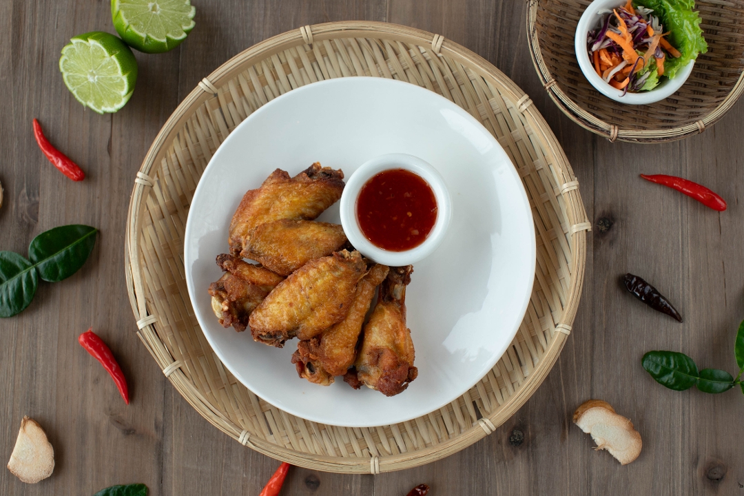 6 deep fried chicken wings with our sweet Thai chili sauce