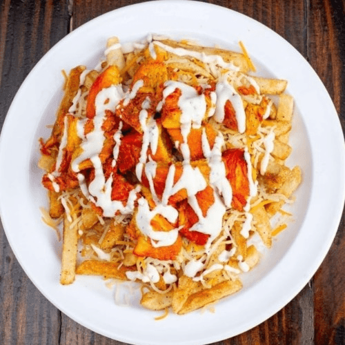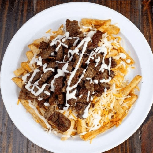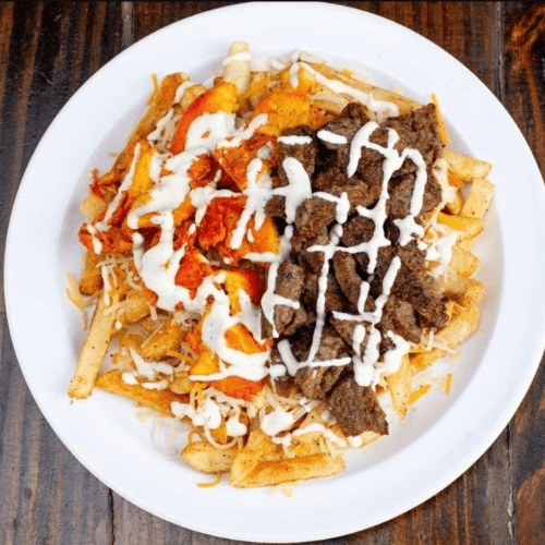 Your choice of protein, mozzarella cheese over seasoned French fries served with Queen sauce, Garlic sauce and side hot sauce.