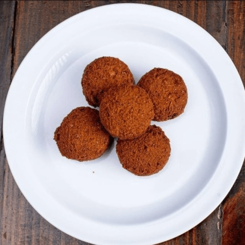 5 pcs crispy falafel balls, ground chickpeas with onions, parsley and spices.