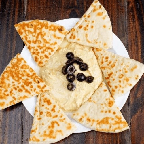 Smooth and creamy puree of cooked chickpeas with pita bread.
